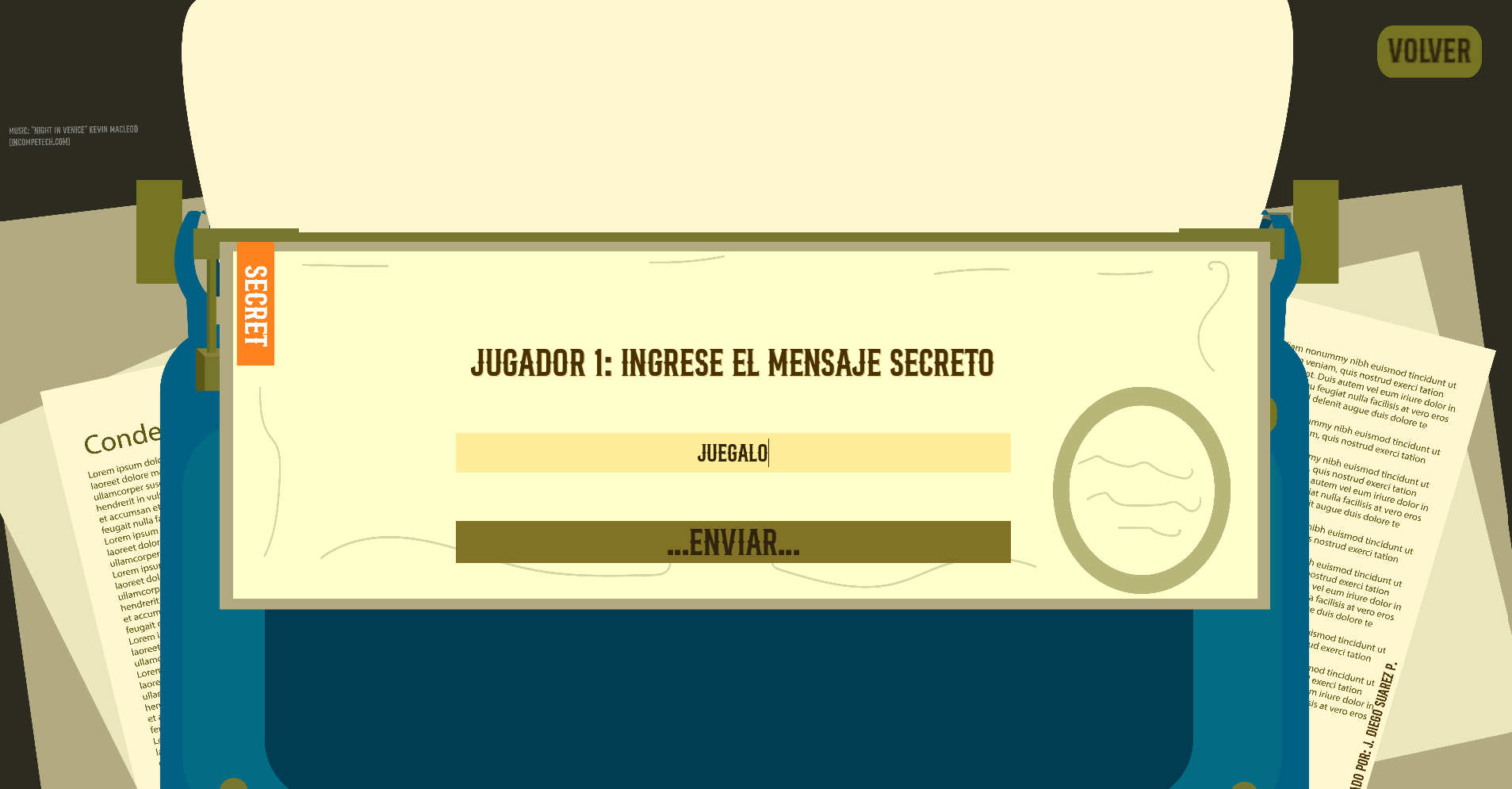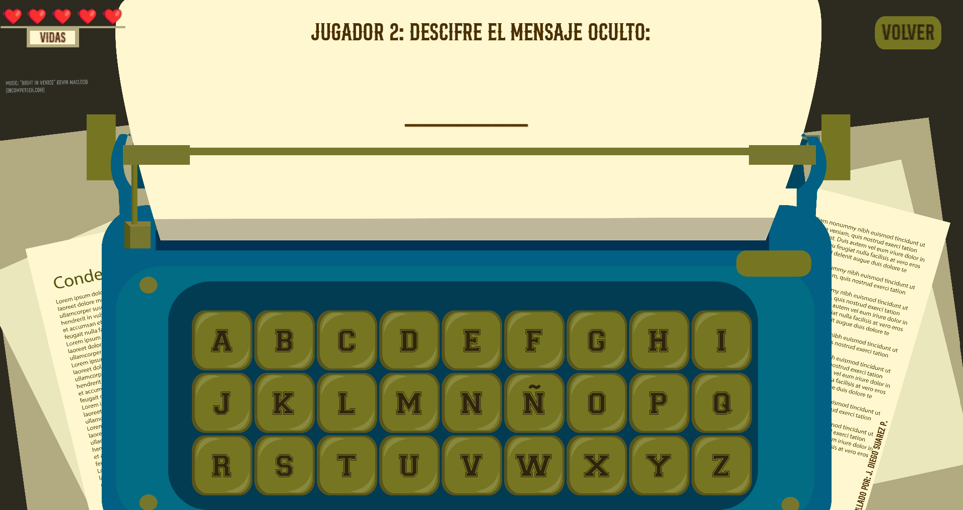 Música: "Night in Venice" por Kevin MacLeod (CC BY 4.0). Sonido: "Typewriter Key" por Robinhood76. Desarrollado por: Juan Diego Suarez Perez.