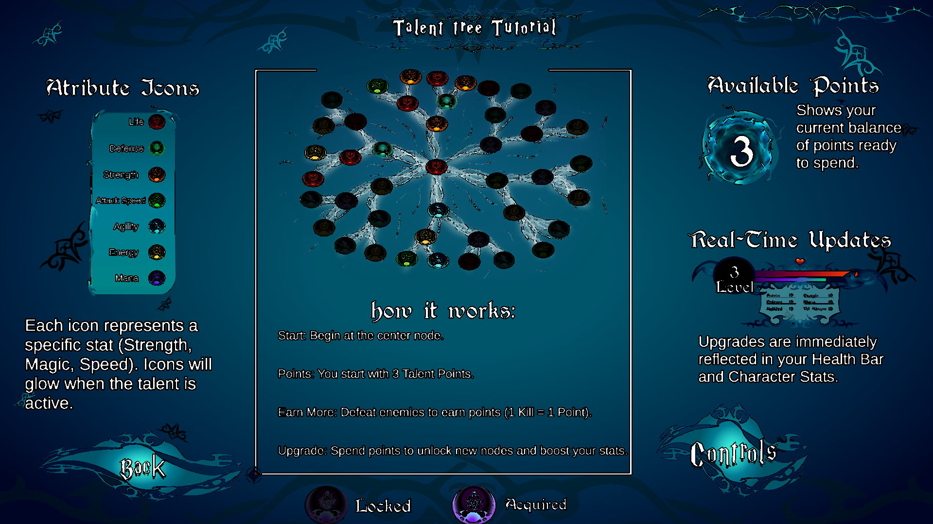 - Claim the Power: Use the essence of the fallen (points) to strengthen your spirit. Improve your stats through the Talent Tree—only the strongest shall survive.